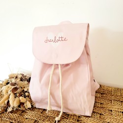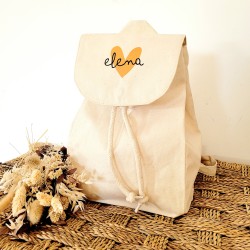 Un adorable sac à dos personnalisé ave le prénom de votre enfants sur un cœur blanc, idéal pour accompagner les petits à la crèche, à la maternelle ou en balade. Léger, pratique et unique grâce à la personnalisation du prénom.