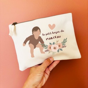 Trousse en coton écru personnalisée avec prénom et jolis motifs animaux. Naturelle, pratique et pleine de douceur, parfaite pour les enfants.